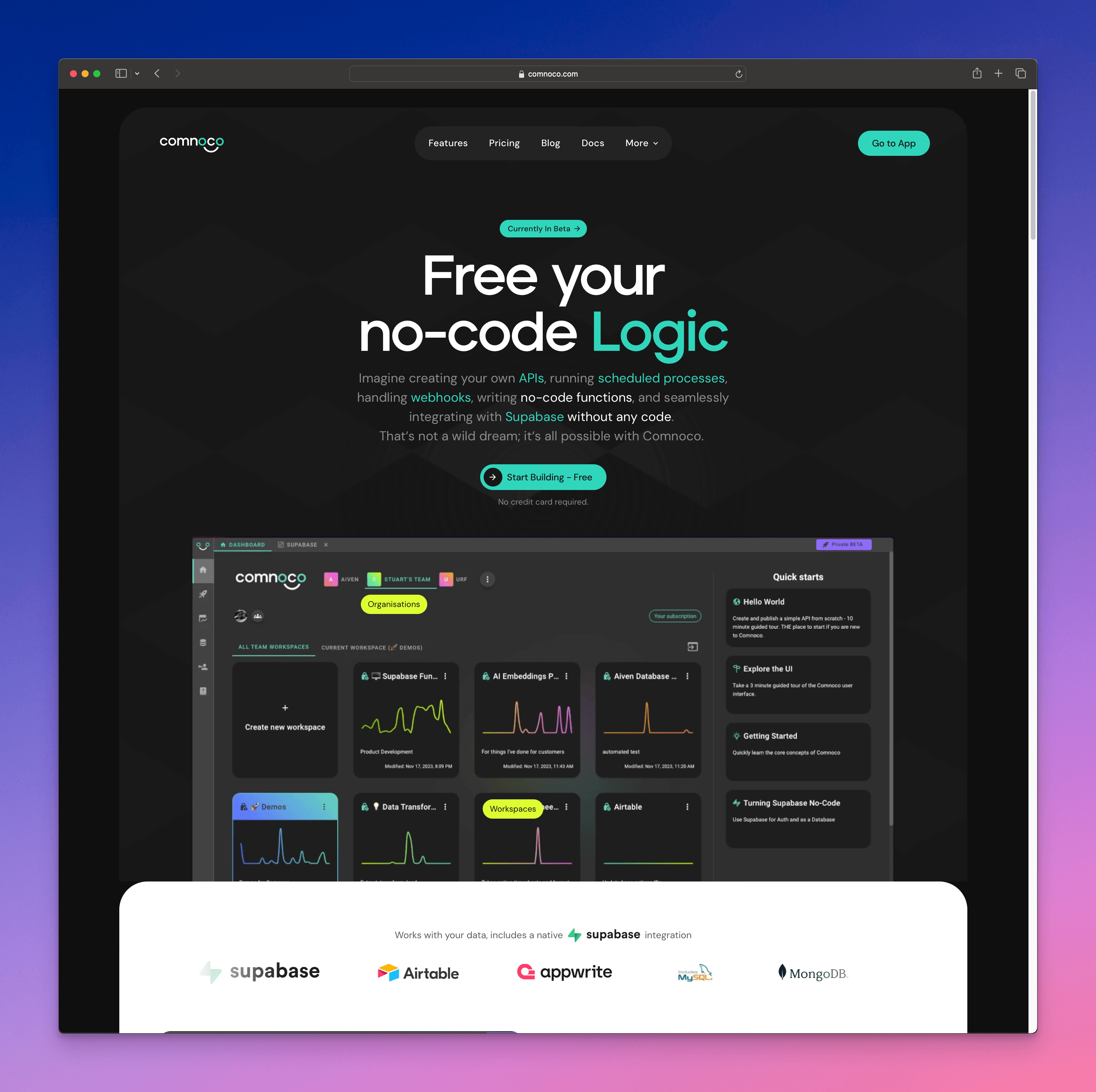 Imagine creating your own APIs, running scheduled processes, handling webhooks, writing no-code functions, and seamlessly integrating with Supabase without any code.